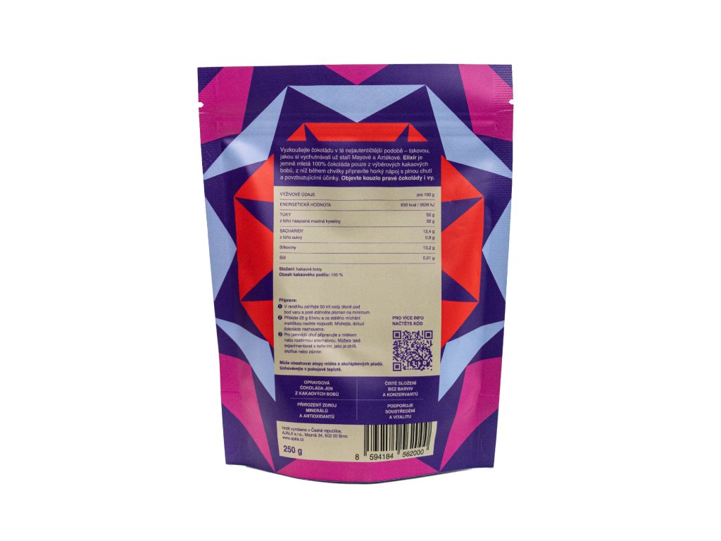 Objevte čokoládu v její původní podobě, tak jak si ji dopřávaly už starověké civilizace Mayů a Aztéků. Náš Elixír je šetrně zpracovaná, jemně mletá čokoláda z výběrových bobů, ze které si během chvilky připravíte nápoj plný energie a hluboké chuti.