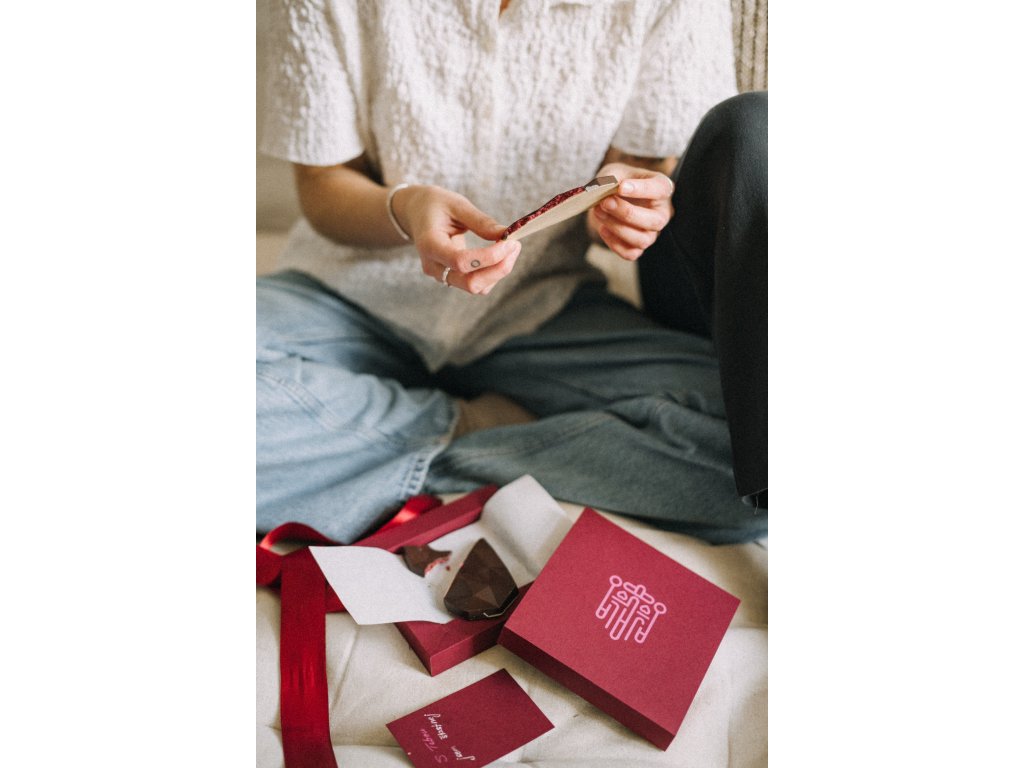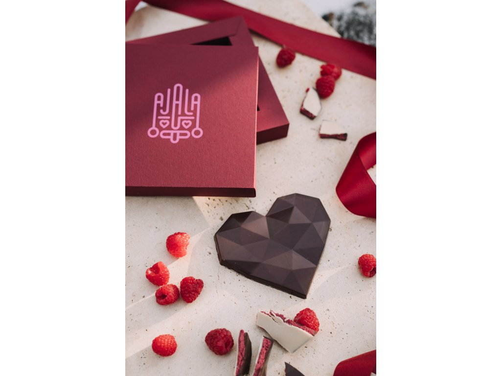 Srdce plné lásky vzniklo spojením dvou kontrastních chutí - výrazné tmavé 70% čokolády z výběrových kakaových bobů a jemné bílé čokolády. Uprostřed je pak propojuje vrstva svěží sladkokyselé malinové náplně. Kvalitní čokoláda v těle uvolňuje dopamin a fenylethylamin – stejné látky, které doprovázejí zamilovanost. Kromě souhry chuti vám tak v každém kousku připomene, proč je vám spolu tak dobře.