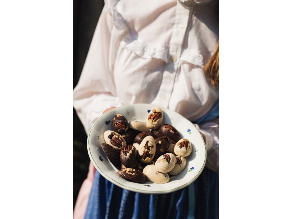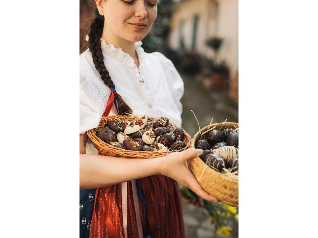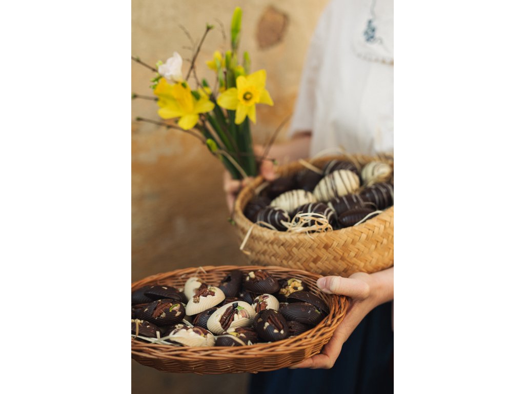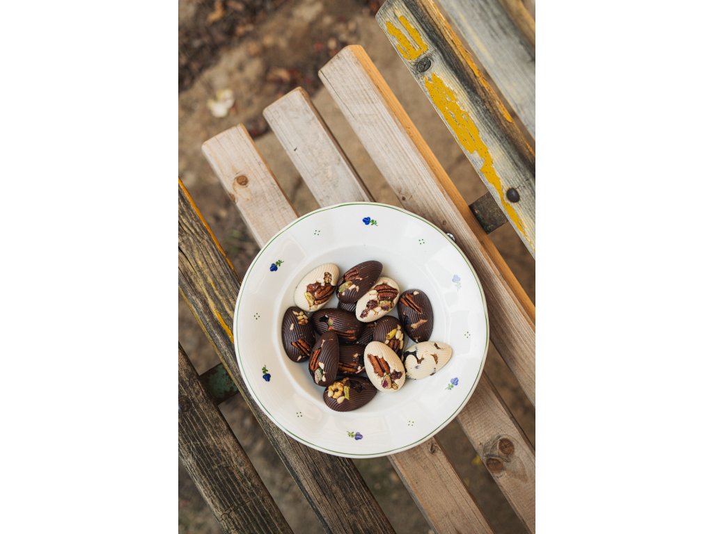 Velikonoce jsou čas radosti, barev a malých sladkých překvapení. Tento čokoládový balíček přináší přesně takové potěšení. Křupavé oříšky a sušené ovoce zalité v kvalitní čokoládě vytvářejí pestrou kombinaci chutí i textur. Každé sousto je trochu jiné a vybízí k tomu si velikonoční mlsání opravdu vychutnat. Skvěle se hodí jako milá pozornost pro koledníky, drobný dárek nebo sladká radost ke sváteční kávě.